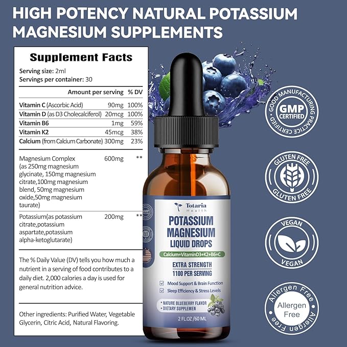 • Solve Your Problems: Do you experience problems such as easy fatigue and poor mental performance? Potassium, Magnesium, and Calcium are essential substances that our bodies need to function properly, try Totaria Potassium Magnesium Drops.