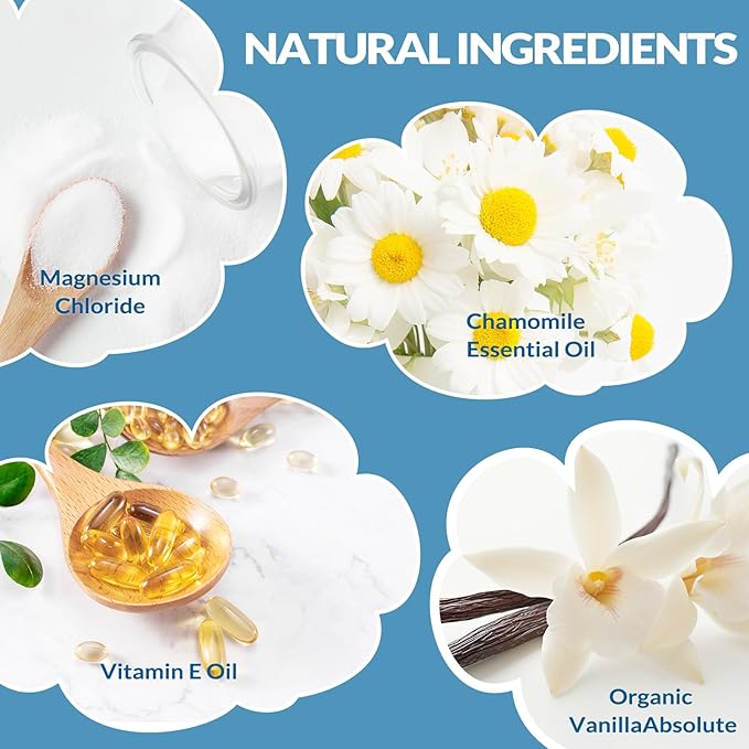 - ☁️ 【Quickly Absorbed & Non-greasy】: Our magnesium lotion is quickly absorbed into the skin and won't feel greasy when used, providing a comfortable experience and a light fragrance. Our magnesium body butter provide soothing and nourishing care for your little ones