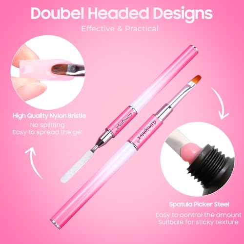 Poly Gel Nail Kit For Toes and Fingers,GlimightyX Straight Flat Dual Forms Reusable for Polygel,Pre-etched No-file Needed, 16 Sizes,with 1.35oz Nail Slip Solution, Dual-Ended Brush,Nail File &5 Clips