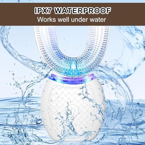 Electric Toothbrush for Adults, U Shaped Automatic Toothbrush for 360-degree Cleaning, 3 Modes for Whitening, Wireless Charging Kit for Travel or Home(White)
