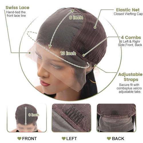- 【Hd Lace Front Wigs Human Hair Cap Detail】 13x6 Lace Front Wigs Human Hair, Medium Cap Size 21.5-22.5 Inch With Adjustable Strap, Elastic Bands And Combs Attachedand Combs, Can Tight Fit Most People'S Heads Perfectly. You Will Feel Like Your Own Hair.