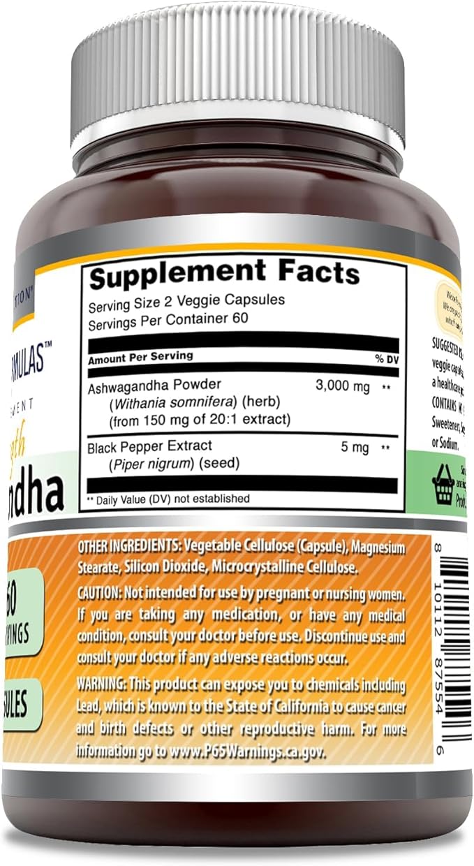 - - Ashwagandha Extract 3000 Mg with Black Pepper 5 Mg Per Serving Supplement
