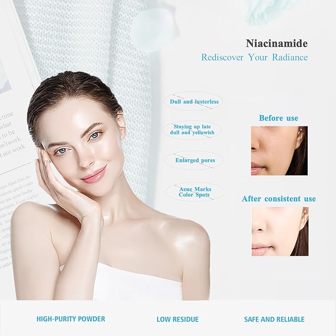 • Multi-Purpose Beauty Benefits: As a powerful ingredient, niacinamide can help improve skin texture, reduce the appearance of fine lines and dullness, leaving your skin smoother and brighter. Ideal for use in serums, toners, and a variety of beauty products, our niacinamide powder is a versatile addition to any skincare arsenal.