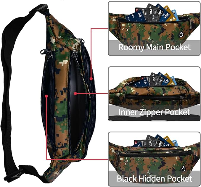 - 【WAYS TO WEAR】The waist bag support many ways to wear: You can wear it in front of your waist, back on your hip, slant across your chest or over your shoulder. Perfect for various occasions. Such as Shopping, Traveling, Walking, Cycling, Hiking, Party, Festival and so on. Various Colors allow you choose: Our waist bag have different fashionable colors, perfect for men and women.