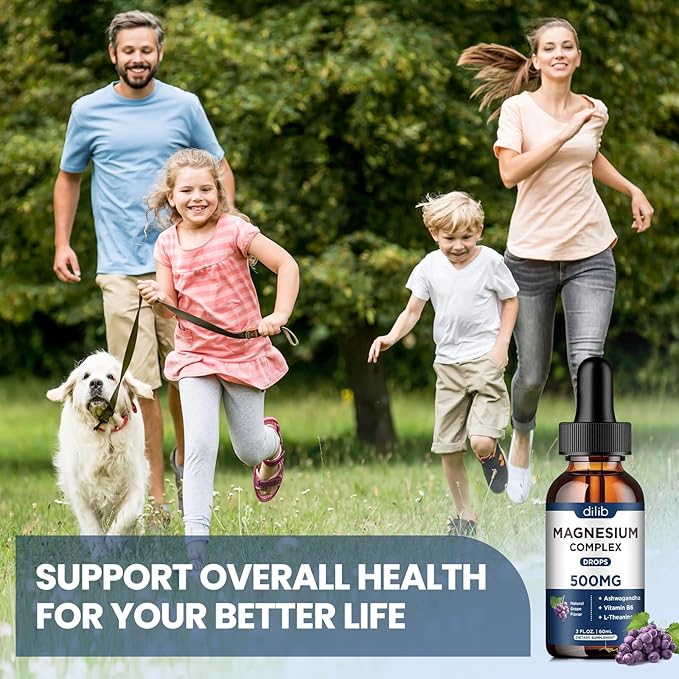- STRESS RELIEF AND CALM: Formulated with Magnesium Glycinate 500mg Citrate, Malate L-Theanine, Ashwagandha and Vitamin B6, Dilib liquid magnesium glycinate supplement drops helps you manage occasional stress, release tension in your body and calm your mind and reduce migraine headaches and leg cramps. You may feel more relaxed during the day for work & study and more restful at night for better sleep