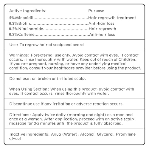 - Dual Action for Hair and Beard: This versatile formula supports hair regrowth for both men and women and is also an effective solution for beard growth. Achieve thicker, denser hair and a fuller beard with the proven power of 5% Minoxidil.