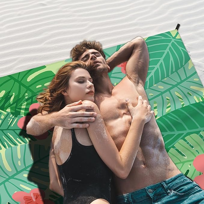 - đăBeach Blanket Sandproof and Waterproofă The beach mat is made of breathable and durable polyester fabric. When there is sand and debris, you only need to shake it slightly to fall easily.There are pockets attached to the corners of the sand mats, which can be fixed by filling with sand. If you are worried that the wind is too strong to be fixed, you can add anchor piles to make your beach mats more stable.