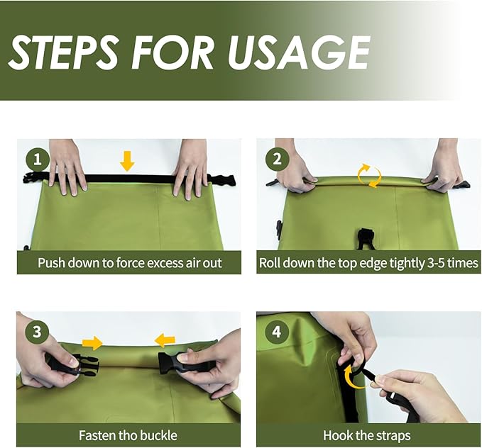 - Waterproof Construction: Crafted with durable tarpaulin material, this 30L duffle bag offers reliable water resistance for kayaking, paddleboarding, boating, rafting, fishing, and camping adventures.