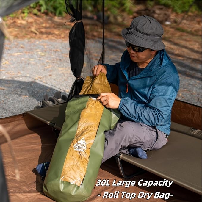 - 30L Large Capacity: OneTigris dry bag backpack offers ample storage space to fit clothes, towels, electronics, food, and other personal items that need to stay dry. The capacity is perfect for various outdoor activities. The dry bag can be folded into a compact size for easy carrying and storage, taking up minimal space