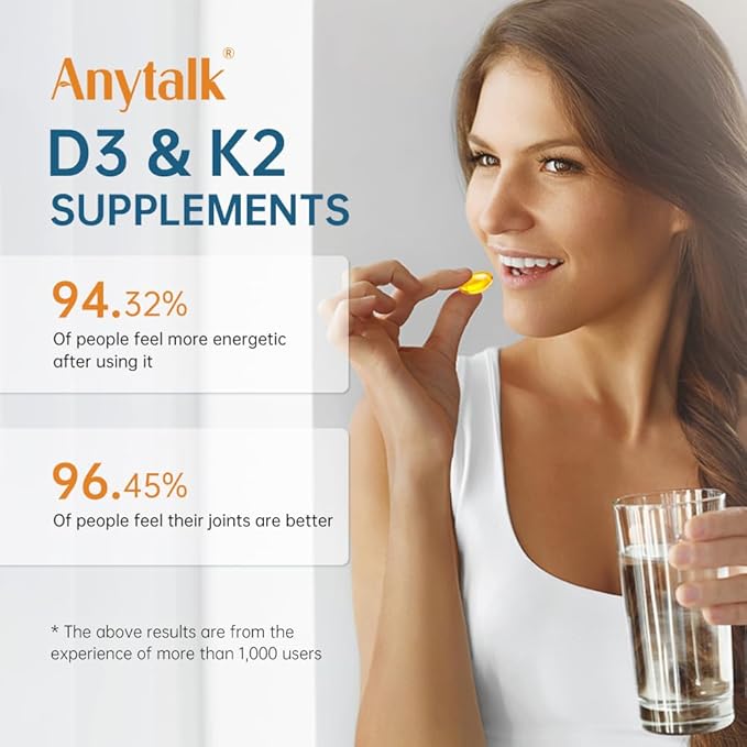 - 【Plant-Powered Nutrients】Anytalk premium K2 D3 vitamin supplement features vegan D3 from lichen & K2 from fermented chickpeas, enhanced with coconut MCT oil for 3x better absorption. This plant-powered formula is 100% gluten/soy/carrageenan-free.