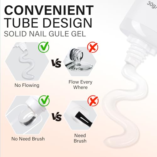 • MULTI-FUNCTIONAL NAIL GLUE: The solid nail tips glue gel can be not only used for sticking nail tips, but also can be used as 3D nail art glue, flat rhinestone glue, nail decor glue. Moreover, it can cover unevenness ensure a seamless fit, suitable for all kinds of nail bed.