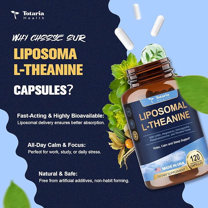 • Advanced Liposomal L-Theanine for Enhanced Absorption & Effectiveness:Experience the benefits of L-Theanine like never before with our cutting-edge liposomal delivery system. This innovative technology enhances bioavailability, allowing for better absorption and utilization of L-Theanine to support relaxation, focus, and mental clarity.