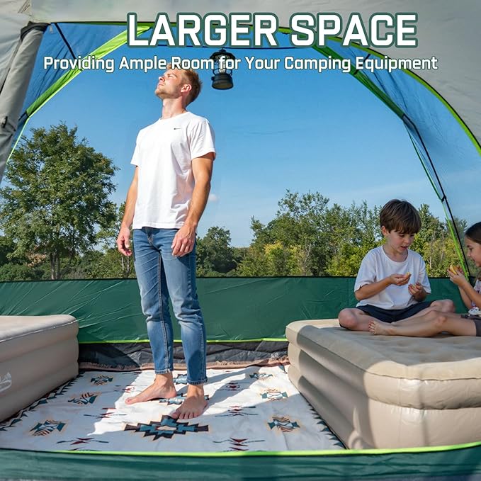 - 【Spacious Family Shelter for 6-8 Campers】 Accommodates families or groups comfortably with two size options: 10x8x5.7ft (6-person tents for camping) or 15x12x6ft (8-person tents for camping). Roomy interior fits queen airbeds, gear, and personal items, making it a large camping waterproof family tent for extended adventures.