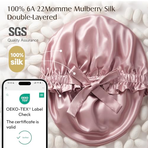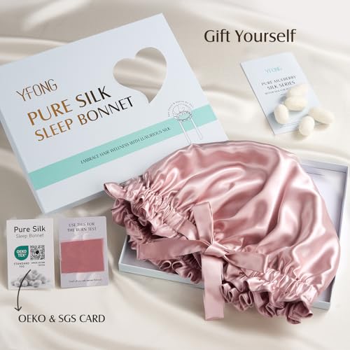 - Luxurious 100% Pure Mulberry Silk Bonnet, No Other Fabric Added: YFONG double layers silk bonnet (Outer & Inner Layers & Straps) are all made of the highest grade 6A 22 momme mulberry silk. Natural silk fabric and double-layered design create a smooth, soft, lightweight, comfortable and lustrous bonnet, offering unmatched comfort and double hair protection. The fabric of our pure silk bonnet has passed the SGS authentication & OEKO certified, ensures real silk and harmless.