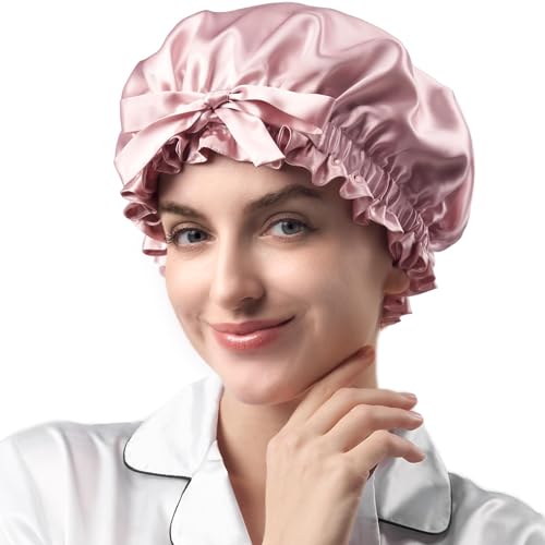 - SPA-LIKE Hair Care You Can Feel: 100% mulberry silk bonnet for sleeping women have a soft, smooth texture that allows hair to slide across its surface, help lock hair moisture, prevent dryness, frizz, split ends. Keeps your hairstyle fresh looking, and prevents loss of hair and wake up with no frizz and keeps hairstyle intact. Wearing your hair overnight in a mulberry silk hair bonnet for sleeping is a naturally nourishing conditioning treatment.