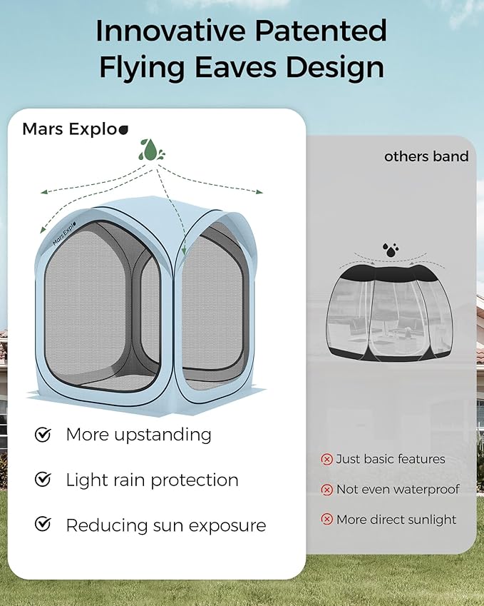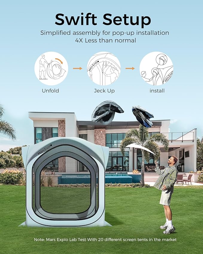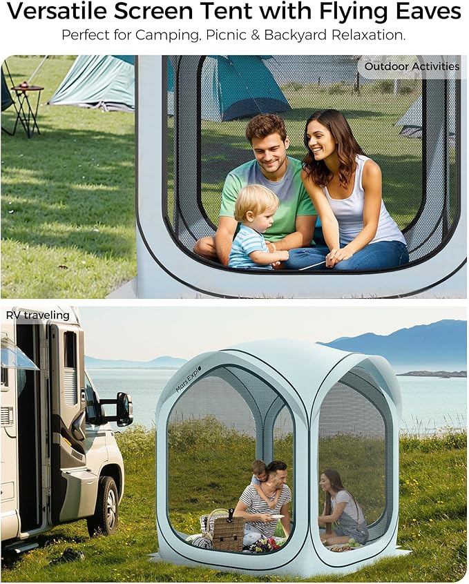 - Versatile & Comfortable Outdoor Experience: Perfect for various outdoor settings, this screen tent is great for relaxing in the backyard, hosting outdoor parties, or camping. It includes a hook for hanging lamps, allowing for extended use into the evening. The breathable design ensures comfort, while the mesh doors provide easy access and extra ventilation.