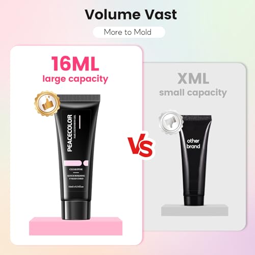 PEACECOLOR 45Pcs Poly Nail Gel Kit with U V Light, 25 Colors Glitter Pink Nude Blue Green Nail Extension Gel Starter Kit with Slip Solution Glossy Matte Top Coat DIY Home Salon