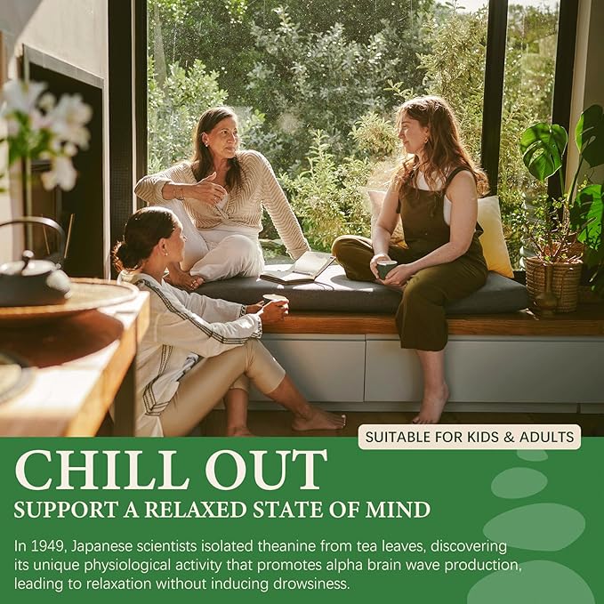 • Natural L-Theanine Benefits: L-Theanine is a non-protein amino acid naturally found in tea leaves (Camellia sinensis). Research suggests it may help support healthy neurotransmitter function and promote relaxation responses.