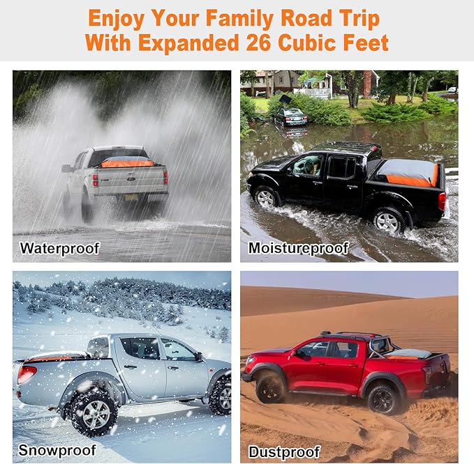 • [Spacious Capacity] - Sailnovo truck bed waterproof storage can hold 36 cubic feet of space for 8 suitcases, 8 sleeping bags, 4 tents, etc. The overall size is 59β€˜β€™x48β€˜β€™x22β€˜β€™, plenty of storage space to free up space inside the vehicle and make the journey more comfortable for multiple people. We are equipped with free storage bags and inner boxes for easy storage and use