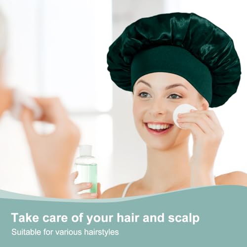 • ๐—–๐—ผ๐—น๐—ผ๐—ฟ ๐—ผ๐—ณ ๐—ฆ๐—น๐—ฒ๐—ฒ๐—ฝ ๐—–๐—ฎ๐—ฝ: Our dark green sleep caps for women are perfect for curly hair bonnet for sleeping, providing protection, and maintaining styles overnight.This sleep bonnet minimizes frizz, allowing you to wake up with beautiful, well-kept hair. Protect your hair while you sleep with our sleeping bonnet, designed for ultimate comfort and style.Perfect as a curly hair bonnet for sleeping, our sleep bonnets for women fine hair provide a secure fit and gentle protection.