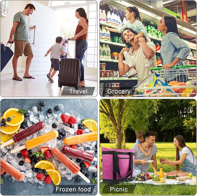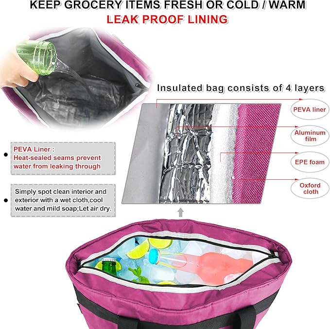 • Collapsible & Multi-Functional: The cold grocery bag insulated fold up flat and for easy storage. It can help you store cool or warm foods when you are shopping in the supermarket. It is perfect for travel cooler bag, beach cooler tote bag, insulated picnic bag,lunch bag, fish cooler bag, insulated reusable grocery bags, beach cooler, insulated shopping bags.