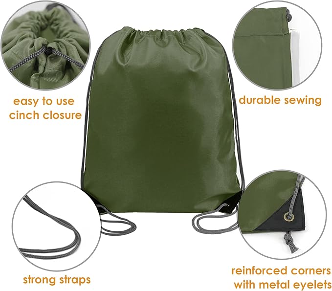 - 【DURABLE】Our draw string bag is made from polyester fabric, so they are shape-retaining strongly. You can fold them up when not in use, and they won't take up much space when folded, and they still look like new next time you use them. And the sewing of the drawstring bags is strong, which makes them more sturdy to hold heavy stuff safely and not easy to tear, the drawstring backpack can last for years, it can store your things when you don't want it.