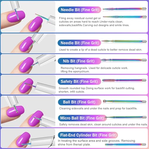 - Great Quality and Saving Money: These nail bits for nail drill are made of premium material. This acrylic nail drill bits kit includes 13 diamond carbide, 6 ceramic, 3 tungsten carbide nail bits, 1 rubber polishing nail bit and 2 cleaning brushes, made to last and save money for you.