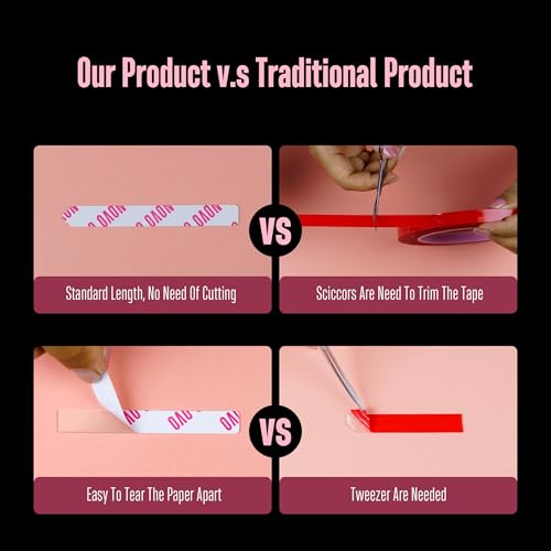 • SPECIAL AUXILIARY HANDLE FOR EASY APPLY AND REMOVE:The suface of Our nail art display strip tape is made of paper instead of plastic flim, which is easier to take off. Also, the specially designed auxiliary handle can help us to tear off the surface easily. You can even take it off with your hands, instead of using the tools for the traditional plastic patches, saving such time and effort. Also, this double sided mounting tape can be removed when you do not want it and it leaves no trace.