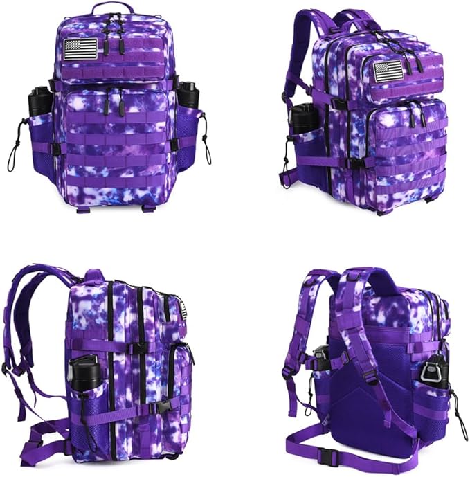 • Military backpack is Made of 900 oxford nylon fabric,Tactical Backpack is Reinforced and Double Stitched at All Stress Points. There are 2 main compartments, 2 small compartments in front, and a back compartment for a hydration bladder (backpack didn't include hydration bladder). Each of the compartments has variety pockets to help with organization.