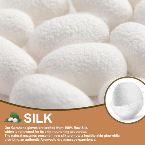 - Skin-Nourishing Benefits: Ideal for daily use, these garahana silk gloves help improve skin texture and promote a radiant, revitalized appearance. Incorporate them into your routine for a gentle, yet effective dry massage that aligns with Ayurvedic practices for holistic well-being.