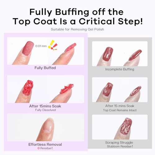 - Nutritional Ingredients: Have the same exceptionally efficient and powerful for swiftly removing as acetone 100 percent nail polish remover, enriched with grape seed oil provides deep nourishment and care, reduce the risk of excessively drying out nails or cuticles. Remember to shake before use soak off gel polish remover to make the nutrients more easily absorbed.