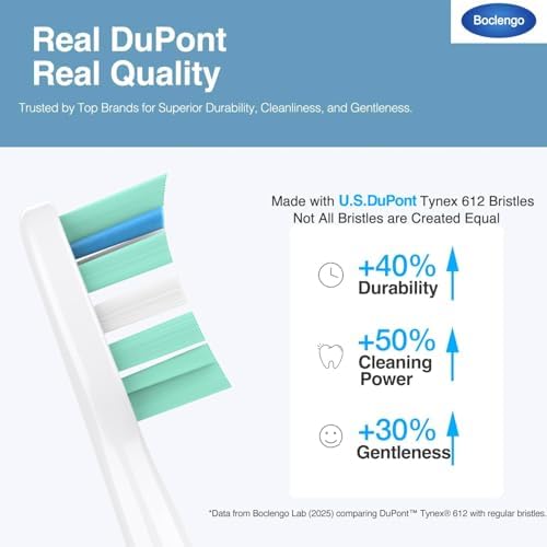 - CARE FOR TEETH & GUM HEALTH - More gentle touch and comfortable brushing! Feel the difference between U.S. genuine premium DuPont bristles (the bristles are the same as the name brand). The electric replacement toothbrush heads for Phillips Sonicare feature the Higher Ratio(>90%) DuPont End-Rounded bristles which achieves an optimal balance of cleaning and gentleness, preventing irritation and protecting teeth and enamel.