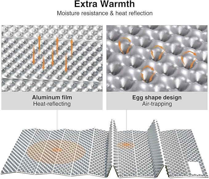 - Adaptive Thermal Performance Optimized for -5°C to 35°C (23°F to 95°F), the reflective heat-trapping layer enhances warmth retention in chilly conditions, while ventilation grooves reduce heat buildup in summer. UV-resistant materials prevent degradation during sun exposure, outperforming standard pads in multi-season versatility.