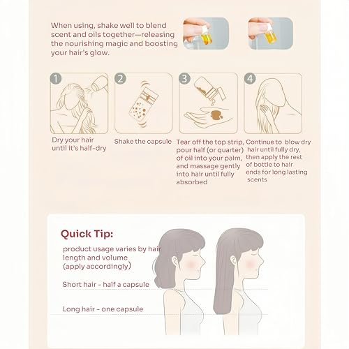 • Effortless Hair Care: Capsule-encapsulated hair perfume serum for instant shine! After washing and blow-dry, twist open a hair treatment oils capsule and massage the lightweight serum through hair, no need to rinse for silky smooth, manageable hair and beautifully scented all day! It’s also a thoughtful gift for women who love to enjoy fresh, delightful hair and exude a soft, feminine fragrance wherever they go