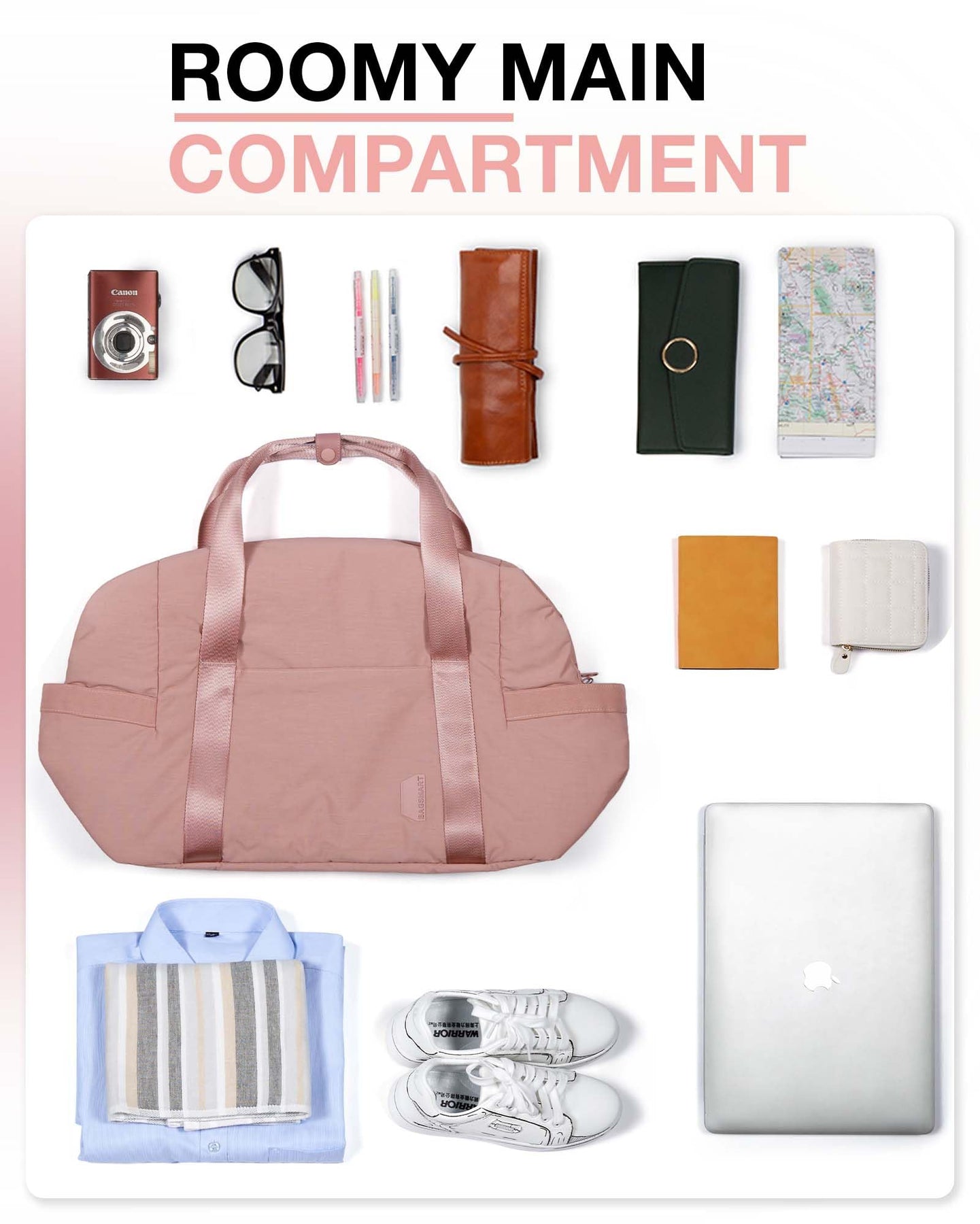 - Compact Size: 19.7 x 8.7 x 12.2 inUltra Lightweight- Weekender bag weights only 1.8 pounds. Lightweight and soft nylon fabric makes your carrying comfortable.ch, meets most carry-on requirements.