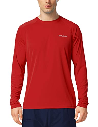 BALEAF Men's Sun Protection Shirts UV SPF T-Shirts UPF 50+ Long Sleeve Rash Guard Fishing Running Quick Dry Tomato Size S