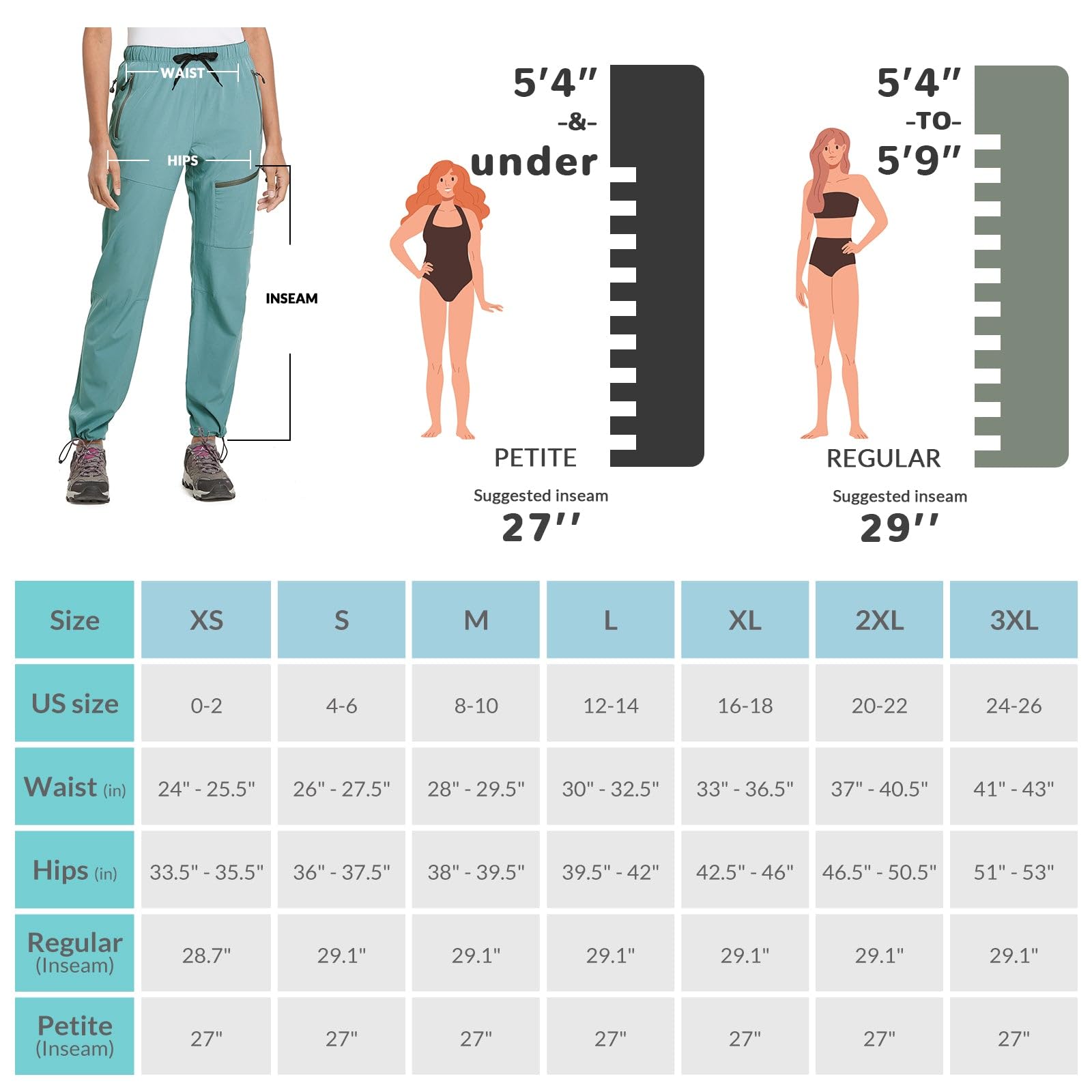 - Don't let sizing be a hassle! We launched petite(27ββ inseam) and tall (31ββ inseam) version if you got a petite or tall figure, pick it. Plus, our pants are easily machine washable for extra convenience.