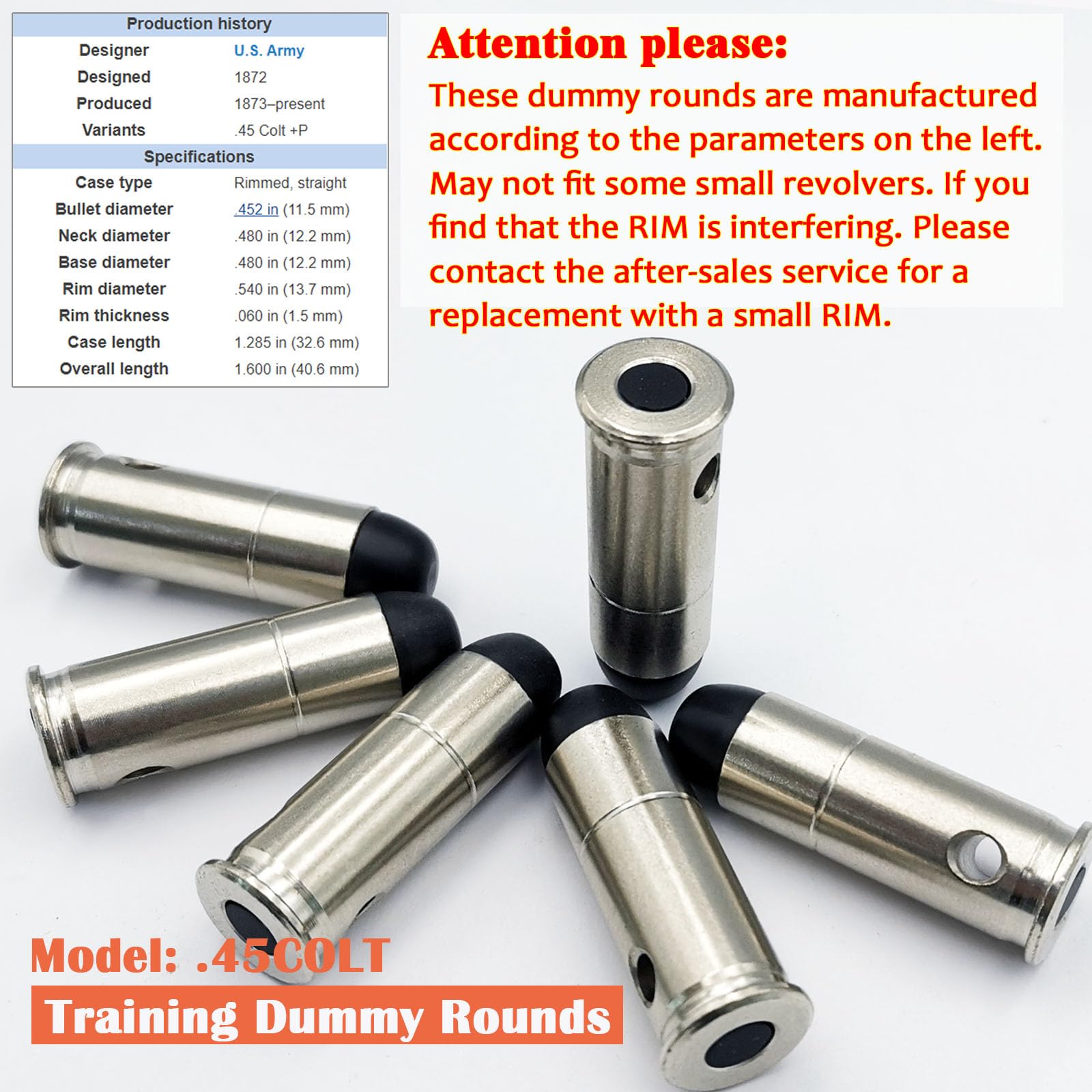 Bayattoo .45 Colt Safety Practice Rounds Action Trainer Dummy Round Dry Fire Training Snap Cap (6pk)