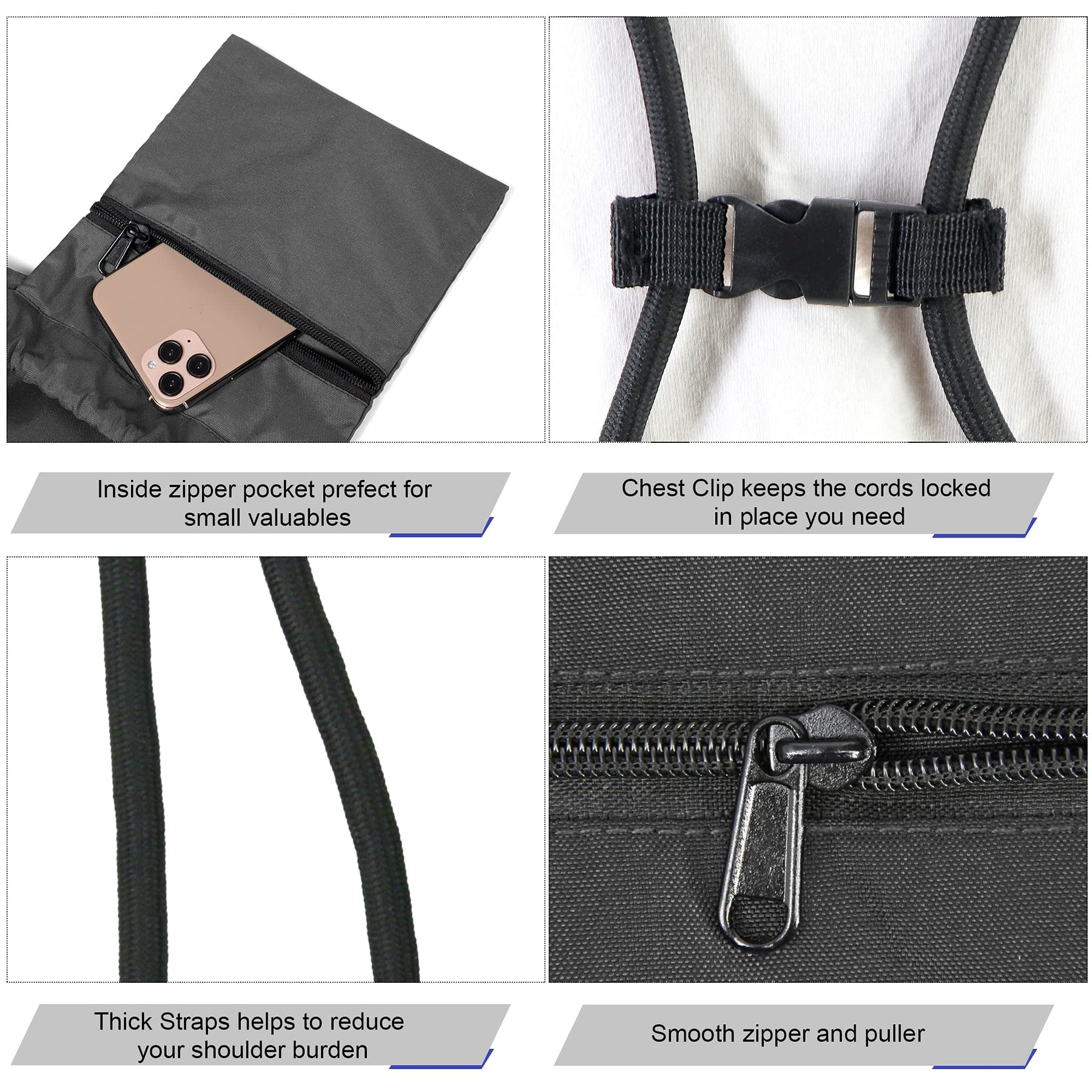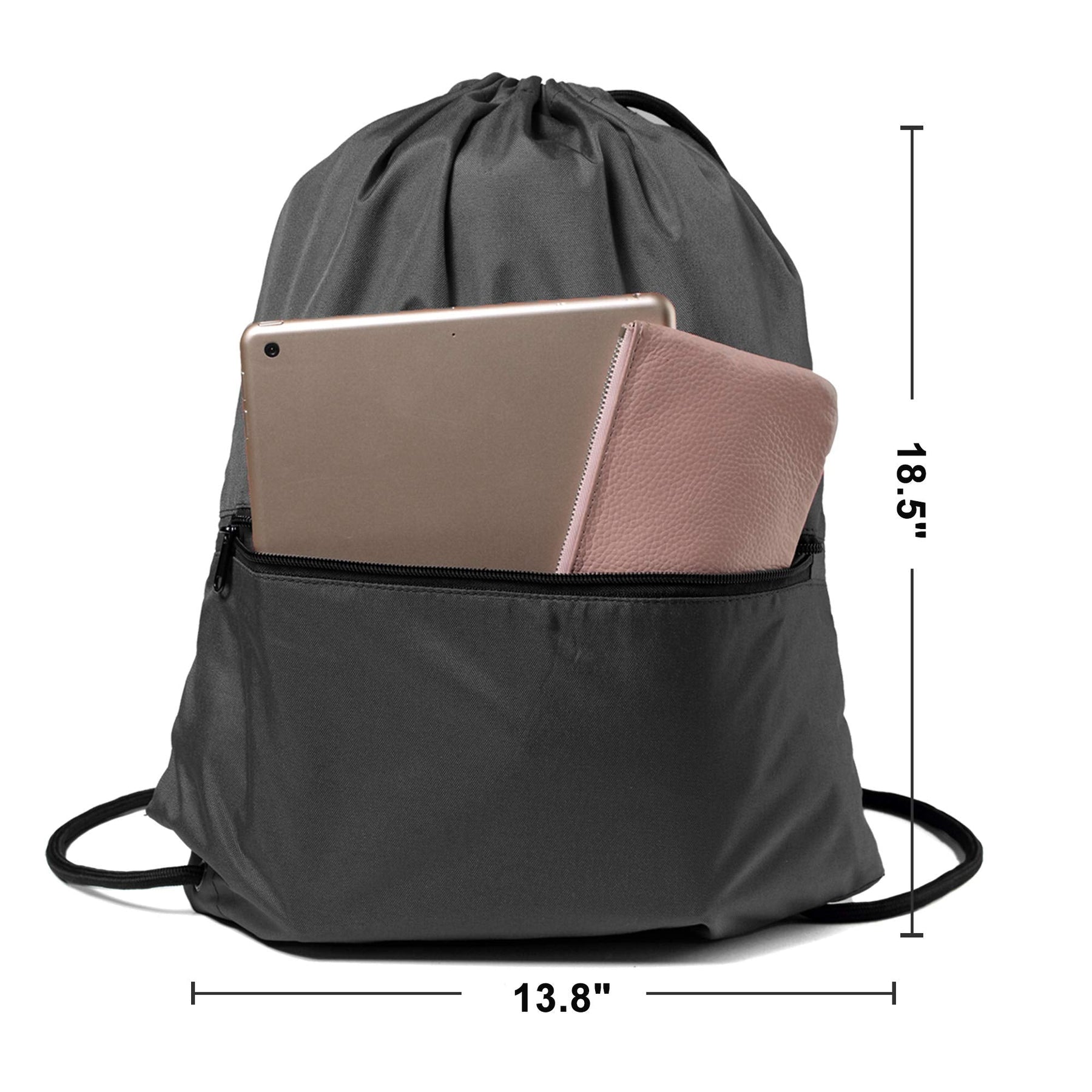 - 【2 Zippered Pockets & Large Capacity】:The size of our string bag is 18.5 'x 13.8'. with 3 functional compartments; 1 main large compartment with drawstring closure fits with towels, hat ,and it is big enough to hold a basketball. The inner zippered pouch of our sports bag can store important items such as cell phone, keys, and wallet , avoidting items from falling. Another front zippered pocket is more suitable for commonly used items such as sunscreen, glasses, lipstick and more.