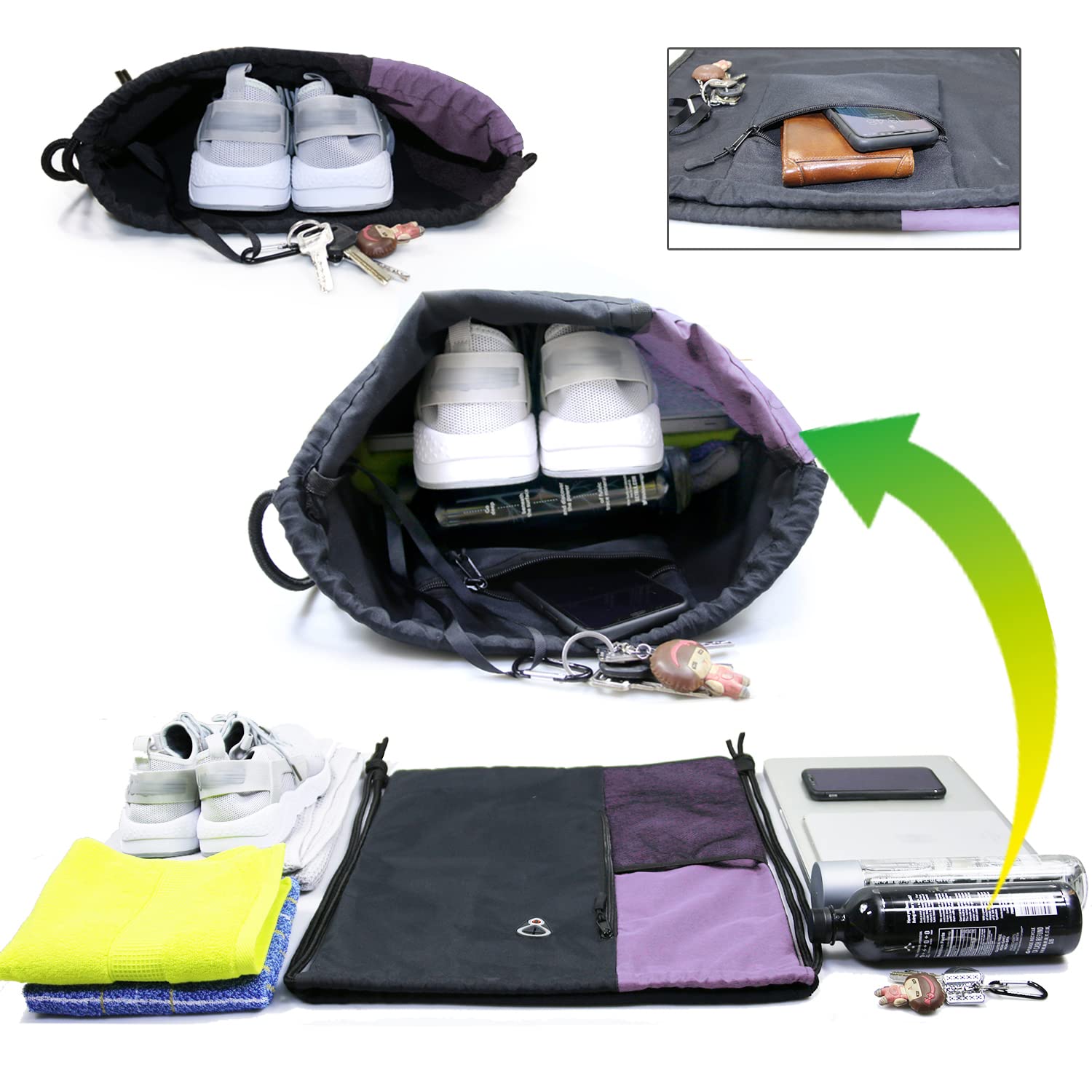 - LARGE SIZE: BeeGreen drawstring gym backpack with large compartment measures 16' x 20' which is big enough for carrying a variety of items such as sports clothing & shoes, gloves, sports towels, swim gear, daily supplies. BeeGreen drawstring sports bag is perfect for the gym, sport, yoga, dance, travel, carry-on, luggage, camping, hiking, teamwork, training, and more! This sackpack is also a fabulous gift idea for men, women.