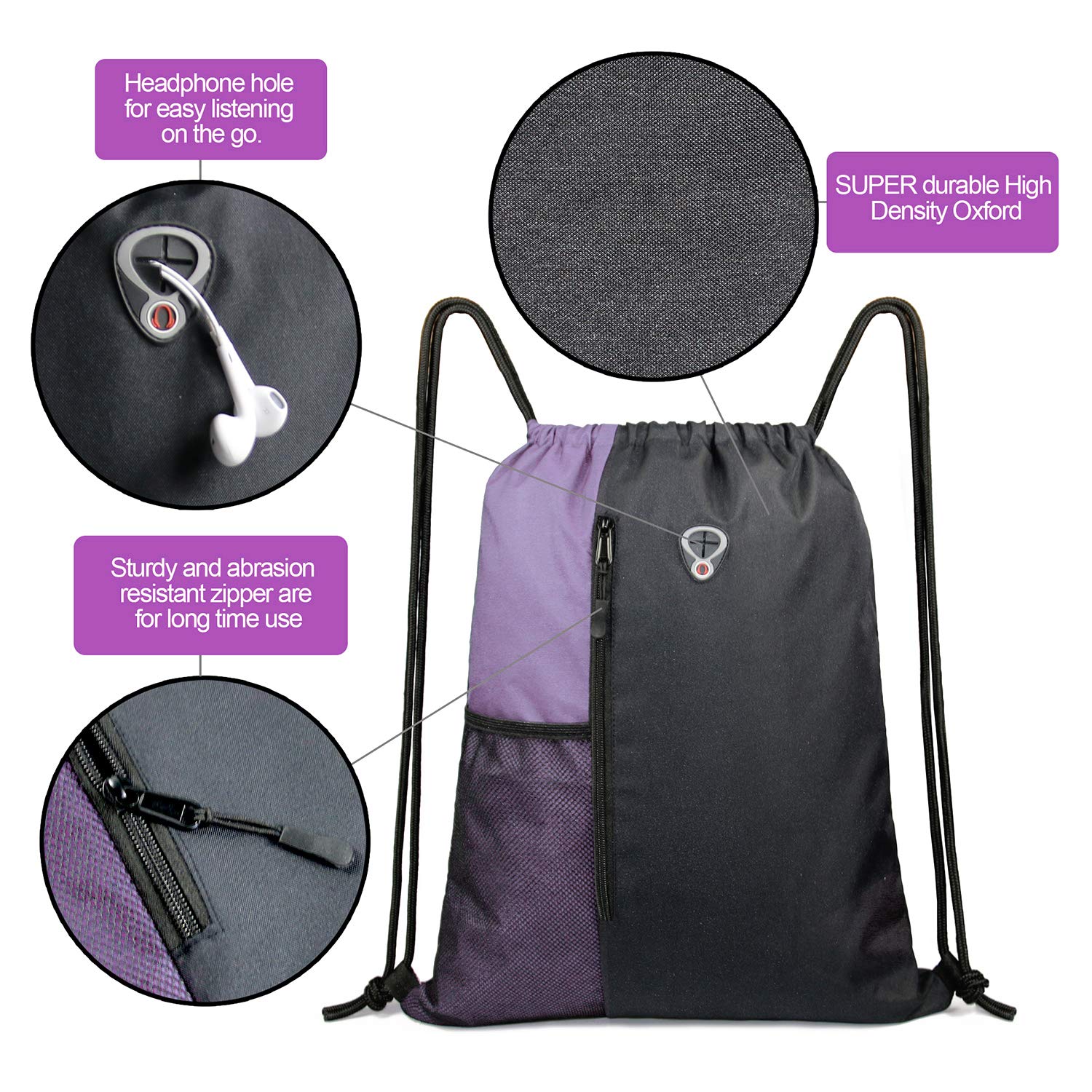 Details: BeeGreen Lightweight drawstring backpack bags with main large compartment and large front zipper pocket which can hold all the items you need to get to in a hurry.✔300 denier High Density Oxford - easy-load wide cinch mouth - front zipper pocket - inside zipper pocket-designed for carrying on as a backpack.with an eye-catching two-tone polyester construction.✔Dimensions: 16'w x 20'h for main compartment- 10'w x 20'h front zippered pocket-7'w x 7'h inside zippered pocket. Best sackpack for gym, college, work or traveling. You can use it for storage of your sports shoes, or place your workout clothes like shirts, pants or any other athletic clothes. You can even put your gadgets, paperwork, school books and other stuff. ✔The cinch sack bag also have super long ribbon ring inside which can hold your keys and help you to find keys easily and take out directly to open the door.✔Headphone hole on front pocket of sacpack for easy listening on the go.✔Super sturdy PP ropes and abrasion resistant zipper are for long time use. Plus the secure sewing these bags will last for years.You can untie and re-tie strings to adjust cord to where you want it so you can have it as low or high as you would like.✔Carry around your gym or swim outfit in this large drawstring backpack bags. these custom drawstring backpack bags with pockets are slung over the back and out of your way. BeeGreen drawstring backpack bags for Men & Women is ideal for school, gym, sports practice or other activities.✔No more worry about polluting your bag because these drawstring bags are machine washable, reusable and durable.✔BeeGreen drawstring gym backpack with zipper is the perfect size and affordable, perfect quality bag for all your custom needs such as Youth sports teams, schools, beach,vacation,educational centers, corporate offices, summer camps,Outdoor hiking and gyms can all benefit from these sackpack zipper bags.