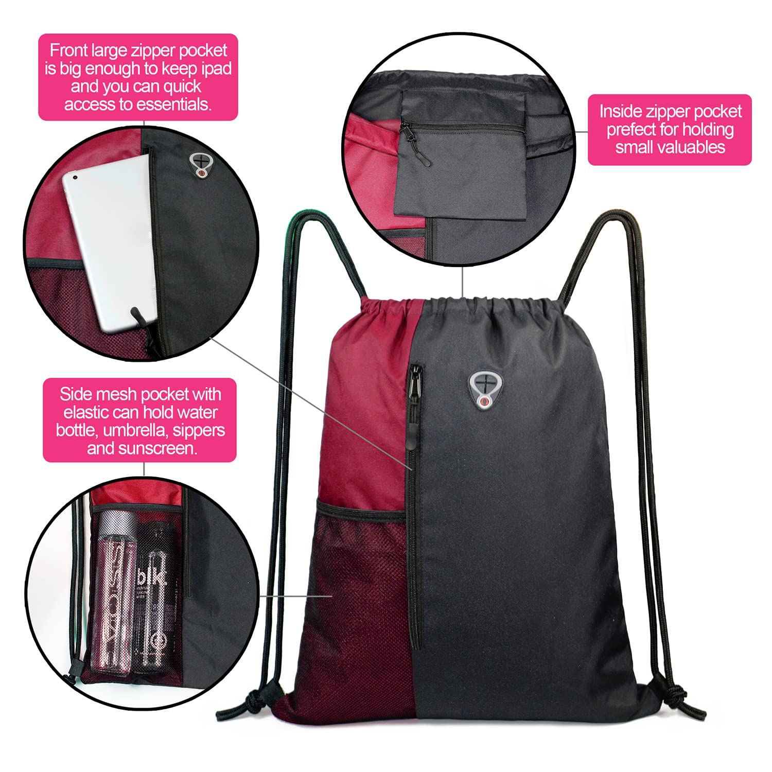 - MACHINE WASHABLE: Being washable is a must for any maroon drawstring backpack. Our gym sack are Machine Washable, Recommend Mild Detergent and Hang to Dry !