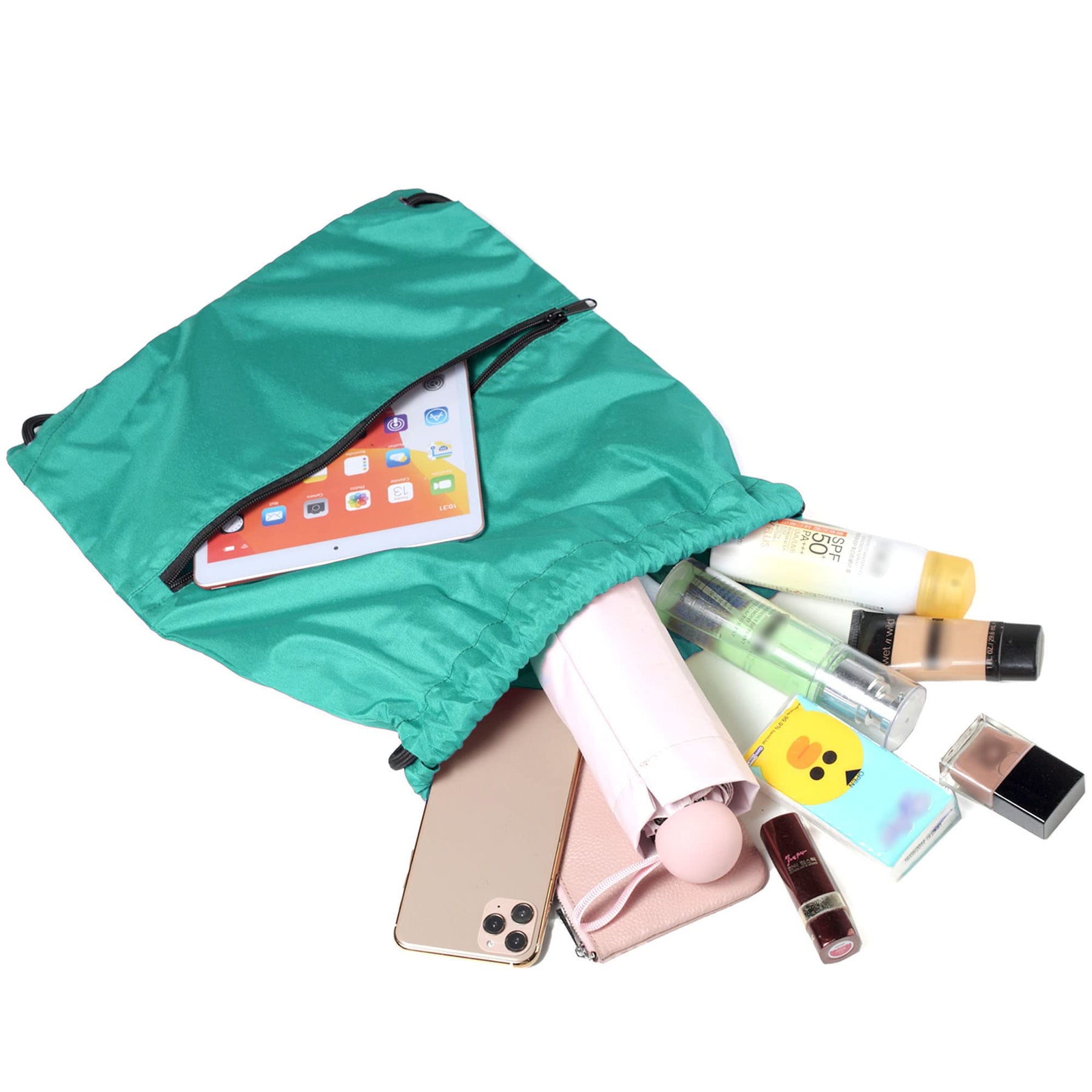 - 【2 Zippered Pockets & Large Capacity】:The size of our string bag is 18.5 'x 13.8'. with 3 functional compartments; 1 main large compartment with drawstring closure fits with towels, hat ,and it is big enough to hold a basketball. The inner zippered pouch of our sports bag can store important items such as cell phone, keys, and wallet , avoidting items from falling. Another front zippered pocket is more suitable for commonly used items such as sunscreen, glasses, lipstick and more.