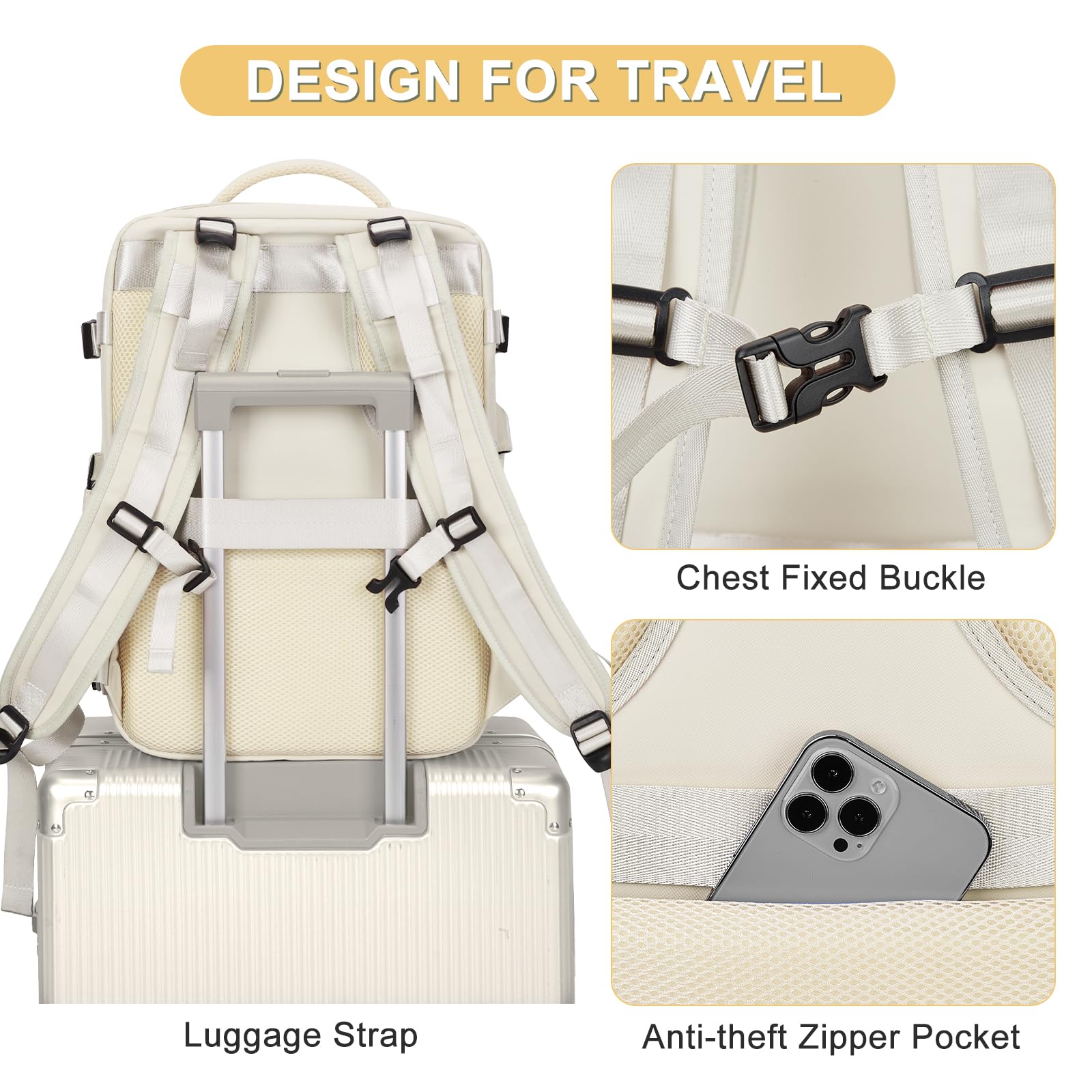 - ★COMFORT AND SAFETY★: Comfortable airflow back design, thick and soft multi-panel ventilated padding provides back support. Breathable, adjustable shoulder straps and a chest buckle to relieve shoulder pressure. This backpack can be slipped on the trolley of the suitcase to make traveling easier. Hidden anti-theft zipper pocket on the back of the backpack to prevent your valuables from being stolen.