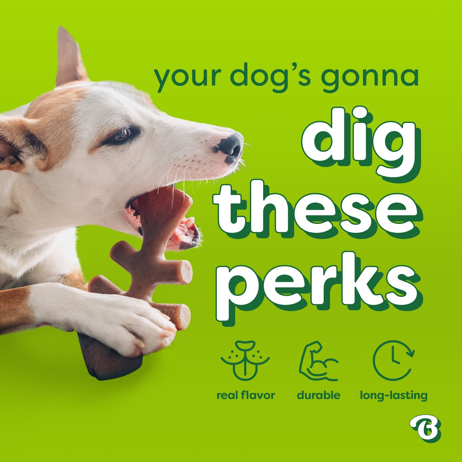 Dogs dig real flavors. At Benebone, we started with the premise that dogs experience scent and flavor in a way we can't even grasp. Inspired by a dog's powerful sense of smell, we developed a long-lasting durable chew's jam-packed with real flavors. Once your dog takes a bite of our chews, he'll be hooked. Wondering if Benebone is right for your dog? Here's what you need to know. Since it's hard, it's important that your pup has strong teeth. If you're unsure, check with your vet because nobody likes an unexpected trip to the dentist. Keep an eye out for wear and tear, within a month or so, we find that most dogs chew Benebone into submission. See the wear page on our website for helpful photos to determine when to replace yours.