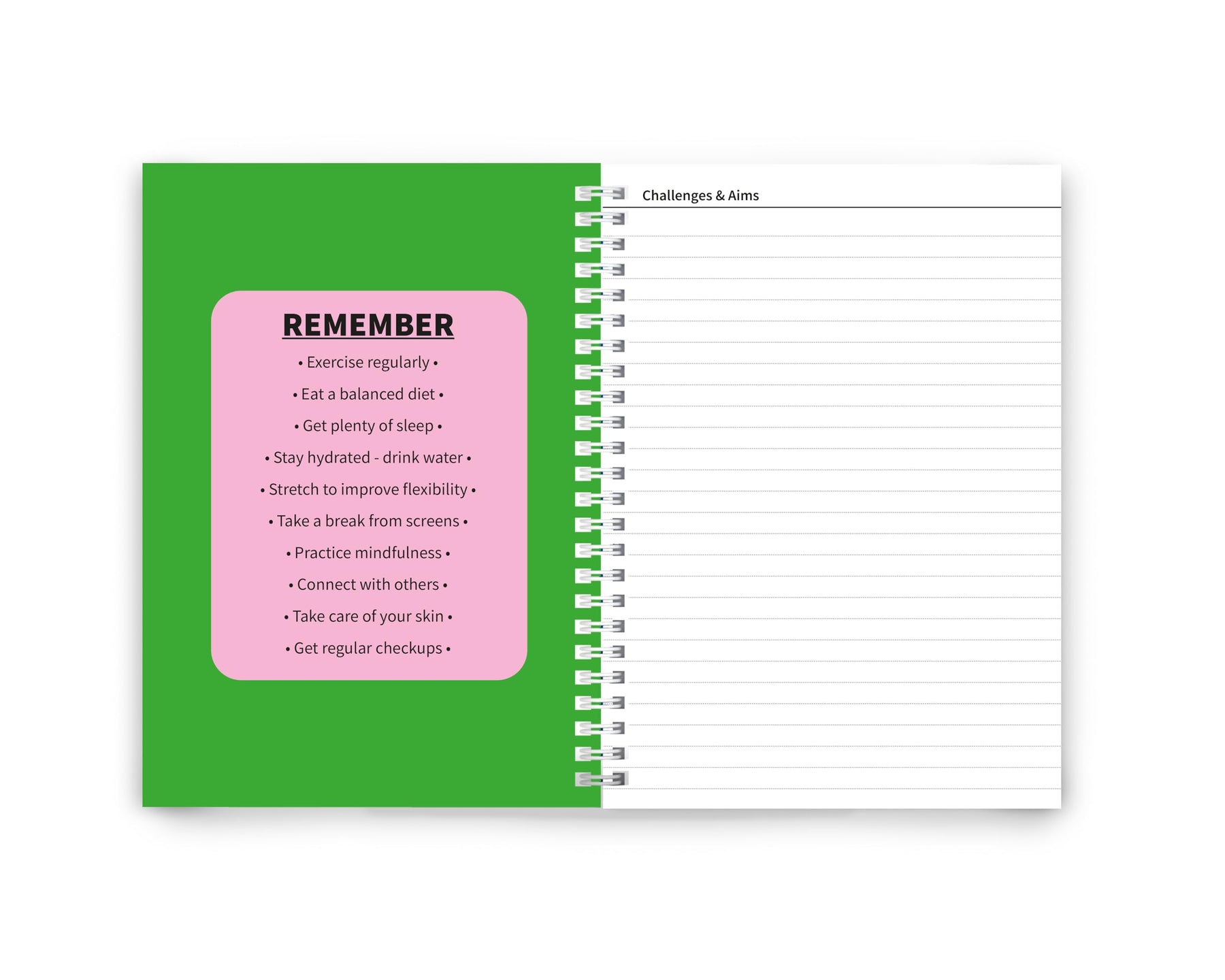 Details: Our Better Health Planner is ideal for tracking your lifestyle with a view to improving everyday nutrition and exercise. With simple charts for nutrition, exercise, habits (both good and bad!), sleep, water intake and many other mindfulness tables the journal is an ideal way to improve your lifestyle. The planner is made from quality materials which means it will last for as long as you need it to making it ideal to refer back to at a later stage and see just how much your life has improved since taking care of your nutrition, exercise and habits etc.
