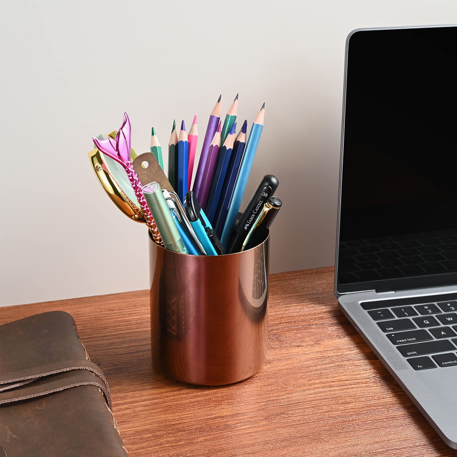 Bidponds Rose Gold Pencil Holder for Desk, Stainless Steel Pencil Cup, Pen Holder Cup, Pen Pot, Vases Flower Pot, Makeup Brush Holder, Desktop Accessory Stationery Organizer