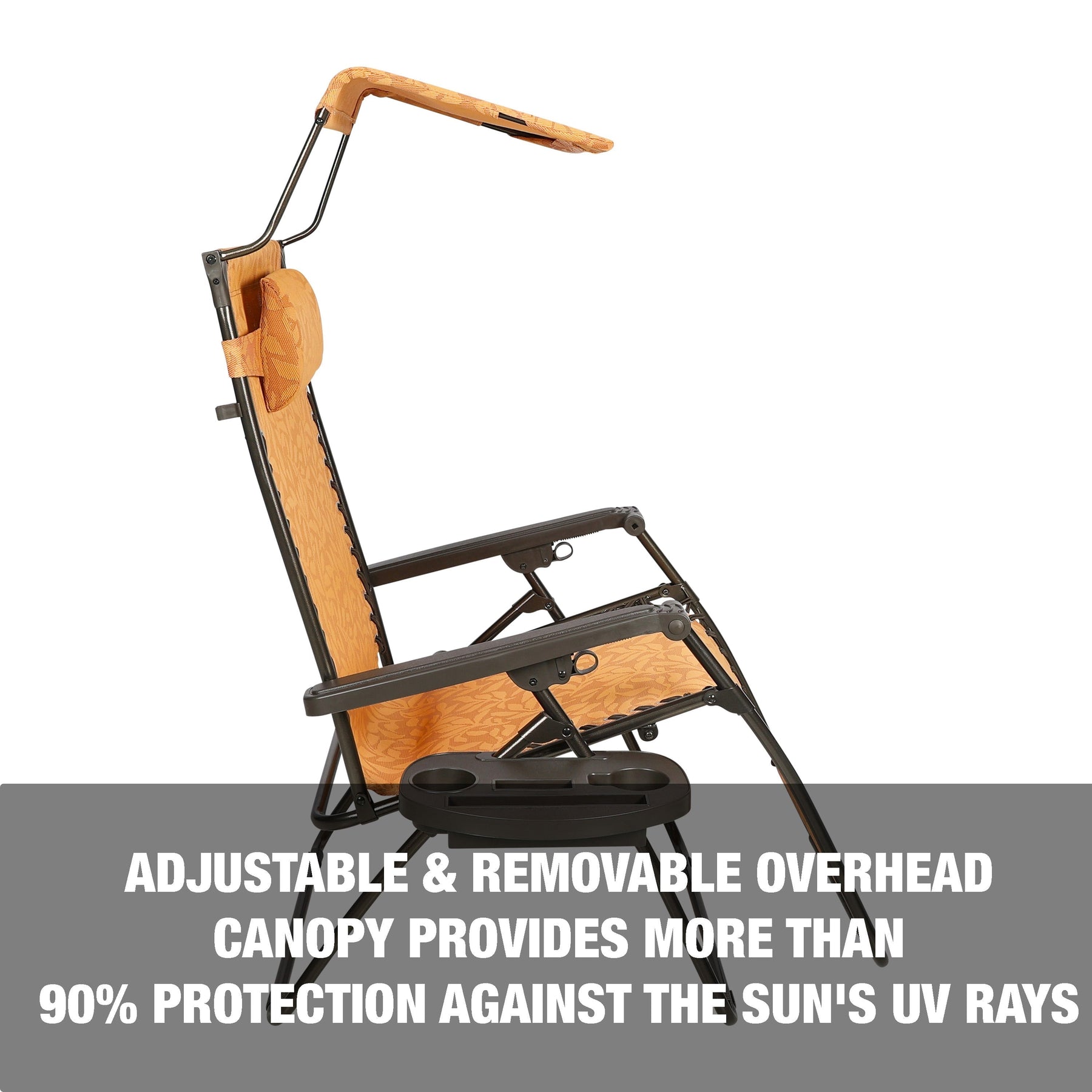 With the XL Bliss Hammocks Gravity Free Recliner, the stress will just float away as you recline back into any desired position! This chair is designed to put your body into the most natural position needed for rest and increased blood circulation when fully reclined. It's designed with 'zero gravity' in mind and extra width for comfort so when fully reclined, your feet are aligned with the heart thereby achieving a neutral posture and ideal alignment. The result is a weightless sensation and of course, complete relaxation! Features an adjustable canopy/ sun-shade that blocks over 90% of UVA rays, and conveniently folds back and snaps into the back of the frame when not in use. Also comes with an adjustable pillow that can be used as a head rest or lumbar support and a side tray that holds 2 drinks, a cell phone & book or iPad. The seat bed is made of a PVC coated woven sling material that is strong, durable and doesn't absorb water, so can be dried instantly with a towel. It can also be easily cleaned with a wet cloth or hose. The sling material is attached to the frame with double bungee, to give you extra durability and allows the material to conform to your body when sitting in it; giving you ultimate comfort! The powder coated steel frame helps to prevent rusting which makes it ideal for use indoors and outdoor use and leaves you with a long- lasting quality product! It also features wider arm rests and and O lock mechanism which allows you to recline in any position, and lock it into place; then simply unlock to put the chair upright again. This XL model is 32' wide and has an increased weight capacity of 360 Lbs. The Bliss Gravity Free Chair folds practically flat for easy storage and portability... Find Your Bliss!