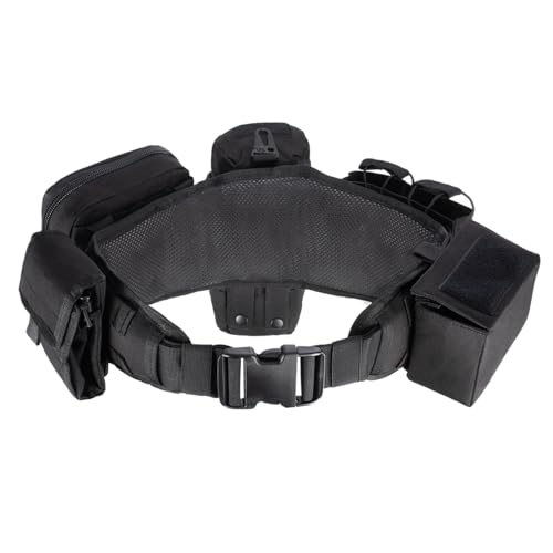 Details: PACKAGE: 7 IN 1,1 Padded belt + 5 parts pouches+Built-in fixed belt*1, Minimum waist:90cm/35.4inch; Max waist:125CM/49.2 inch Bottle bag (L11*W16*H22cm)*1 Magazine box(L14*W7*H8cm)*1 Walkie talkie bag(L15*W7*H14cm)*1 Multipurpose bag (L16*W6*H12cm) *1 Unstack the debris bag (L13*W14*H20cm)*1, Weight:1.2KG/2.65lb.