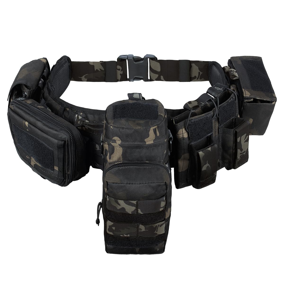Details: PACKAGE: 7 IN 1,1 Padded belt + 5 parts pouches+Built-in fixed belt*1, Minimum waist:90cm/35.4inch; Max waist:125CM/49.2 inch Bottle bag (L11*W16*H22cm)*1 Magazine box(L14*W7*H8cm)*1 Walkie talkie bag(L15*W7*H14cm)*1 Multipurpose bag (L16*W6*H12cm) *1 Unstack the debris bag (L13*W14*H20cm)*1, Weight:1.2KG/2.65lb.